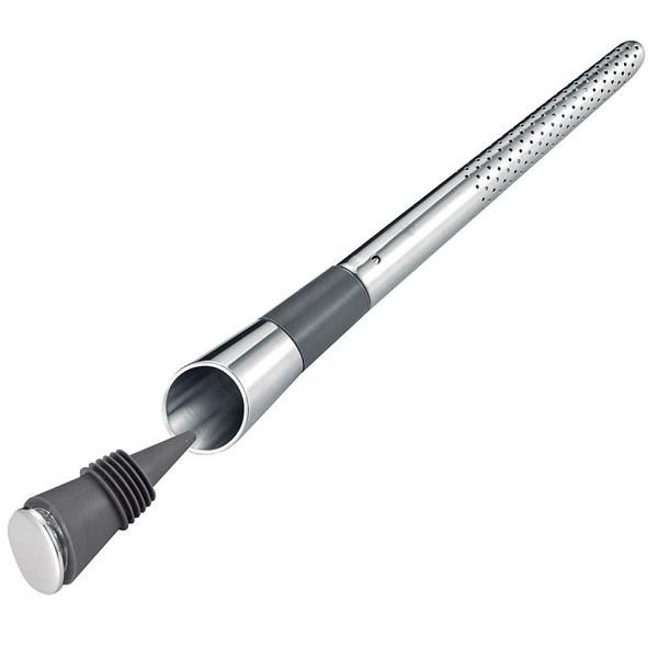 стекло, Аэратор длиной 20см изготовлен из нержавеющей стали. Аэратор включает в себя выливной конус из нержавеющей стали, осадочный фильтр, который также отвечает за аэрацию вина, и пробка для бутылки.