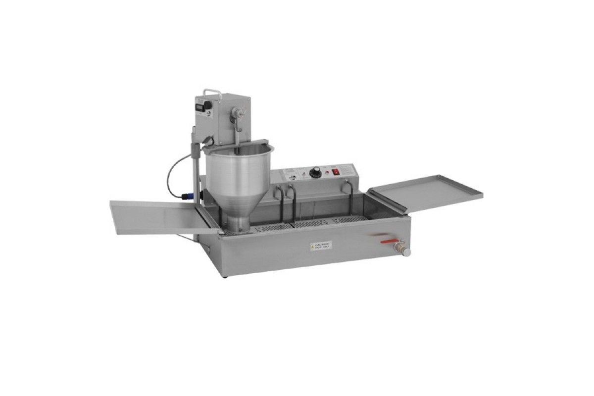 Аппарат пончиковый полуавтоматический, 300шт/ч, ванна 12л, нерж.сталь и алюминий, вес пончика 40-60г, привод автоматический. В комплекте сменная плунжерная пара D40мм