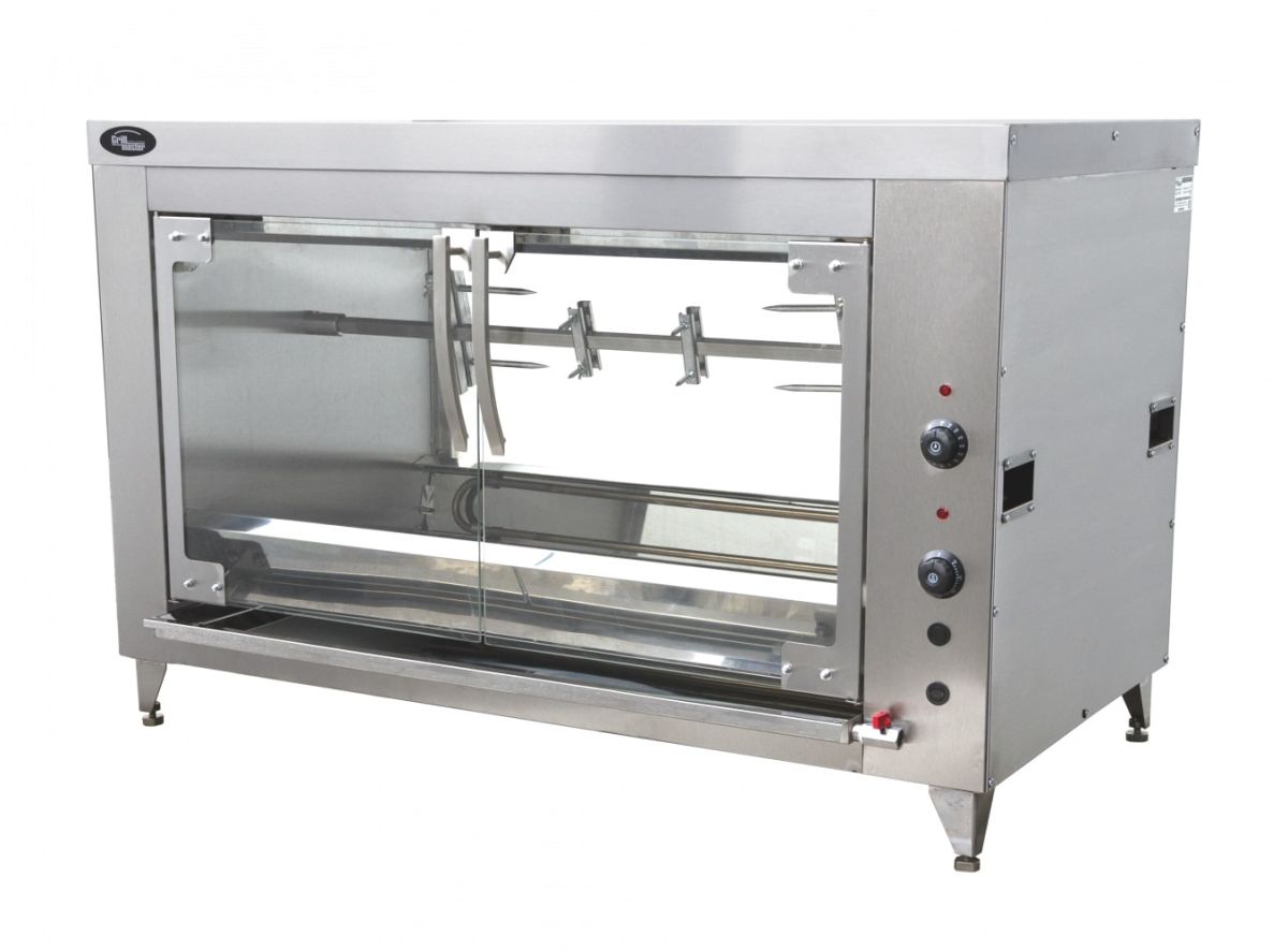 1320х685х760мм, Универсальный гриль на 40 тушек или 1 барашка в базовой комплектации постовляется по желанию клиента либо для жарки птицы, либо для жарки поросят/барашка, передние дверцы и задняя стенка из закаленного стекла, снабжен подсветкой, мощными ТЭНами, сверхнадёжной механикой, по желанию клиента может окрашиваться в золотой, белый, черный, серый, кремовый, красный цвета, в базовой комплектации, таймер на 120 минут, выполнен полностью из нержавеющей стали