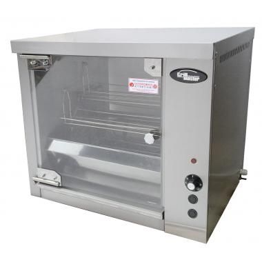 608x540x665 мм, Гриль на 10 тушек, 5 корзин, большая стеклянная дверь и задняя стенка, подсветка камеры, термостат 50-300 С, кнопка прокрутки барабана, таймер на 120 минут, исполнение - полностью из нержавеющей стали, 3.75 кВт, 608х540х665, масса нетто/брутто, кг 45/58