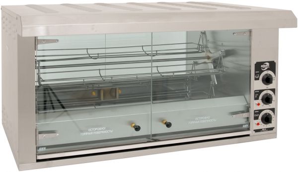 1030*650*580мм, Гриль для кур электрический карусельный, 1 камера, загрузка 16 кур, нерж.сталь, электромех.управление, крыша с подсветкой. В комплекте 4 люльки-корзины
