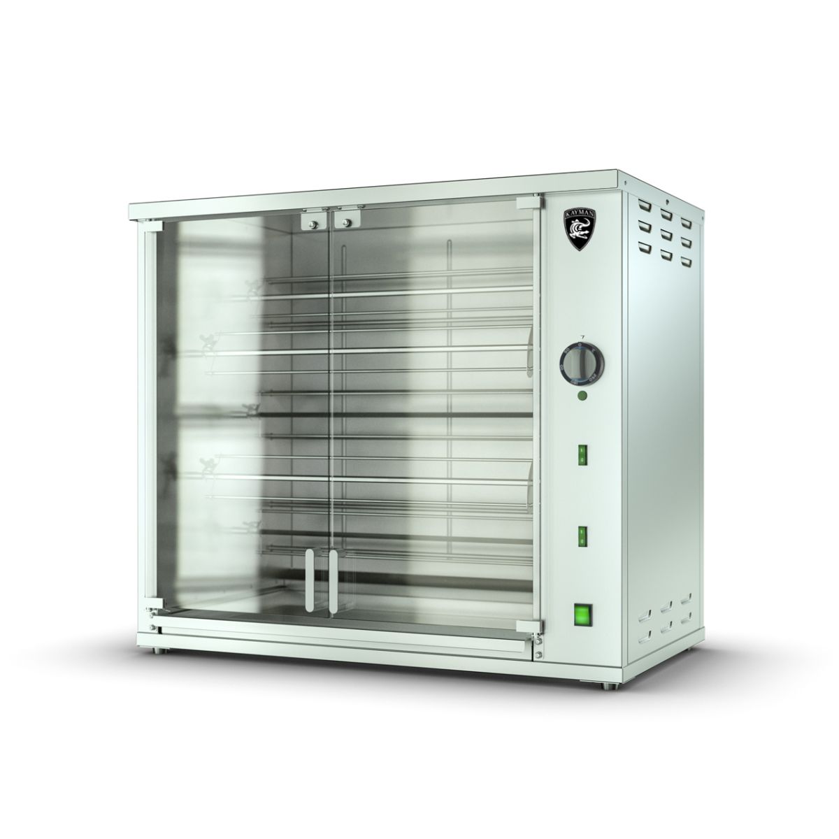 Заказ от 5шт.945х560х825мм, AISI430, 7,3 кВт, 220В,+50...+250С, 5 шампуров на 20/25 кур (каждый шампур на 4/5 кур). Корпус гриля изготовлен из пищевой нержавеющей стали AISI430.