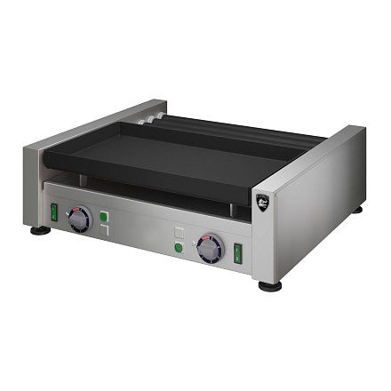 Заказ от 5шт. 536х240х170мм, 0,75 кВт, 220В, ролики из черной стали с антипригарным покрытием 5шт., длина ролика 450мм, кол-во одновременно приготавливаемых сосисок 4-12шт., время приготовления при полной загрузке около 8-14мин, время разогрева роликов до максимальной температуры 10 мин. Скорость вращения роликов 2 об/мин. Под роликами установлен поддон для сбора жира. Масса 7,8кг.