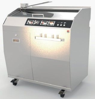 990*746*1133мм, 220В, 0,75кВт. Размер входного канала (Д x Ш x В) в см 47 x 34 x 16 см. Толщина резки в мм: можно установить от 4 до 30 мм, нарезка 180 ломтей в минуту. Максимальная длина батона 47 см. Версия с корпусом из нерж. стали
