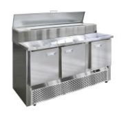 Холодильный стол выполнен из высококачественной пищевой нержавеющей стали. Столы могут производиться (выпускаться) с распашными дверями (ящиками), которые имеют надежные петли (для ящиков направляющие) с опцией доводчиков, что обеспечивает гарантированное закрытие и поддержание заданной температуры в рабочем объеме стола. Используется электрический блок управления с функцией автоматической оттайки. Передняя панель моторного отсека имеет большую площадь перфорации, что позволяет обеспечить холодильному агрегату поступление воздуха для охлаждения. Технические характеристики: Температурный режим -2+8,°С Микропроцессорный блок управления Компрессор Aspera, ACC, Electrolux, l'unite hermetique Динамическое охлаждение Напряжение питания: 220В/50Гц Автоматическая оттайка испарителя Столы выполнены полностью из нержавеющей стали Цельнозаливной корпус Повышенная прочность столешницы холодильного стола Выдвижные ящики холодильного стола снабжены доводчиками