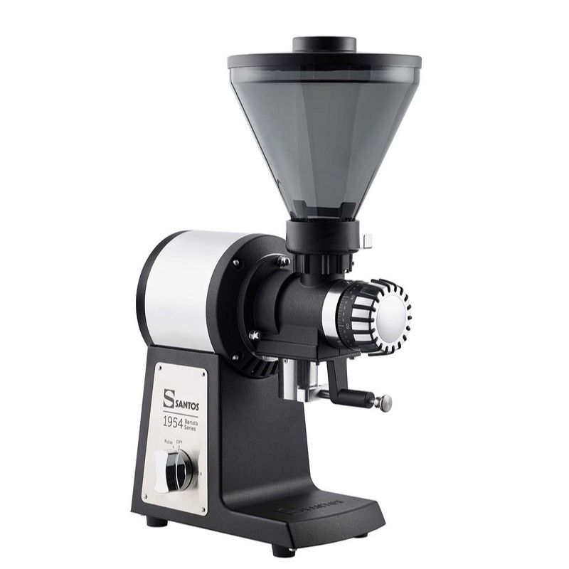 190х330х560 мм, 14,5 кг, 0,65 кВт, профессиональная кофемолка с микрометрической регулировкой помола для любого способа приготовления кофе. Алюминиевый корпус. Идеальна для specialty кофе. Бункер для зерен 1 кг. Горизонтальный винт мотора. Эксклюзивные диски (жернова) Santos 63,5 мм, собственного производства. Средняя производительность 14 кг/ч. Скорость 1500 об/мин. Гарантия на мотор 5 лет. Асинхронный двигатель. Уровень шума 74 dB, рассеивание тепла от мотора, кофе не греется при помоле.