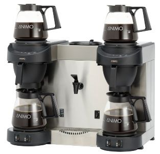 620x380x460/620 мм, производительность 36 л/час (кофе) + 21 л/час (горячая вода), 380В, 6,6 кВт, подключение к водопроводу, цвет черный. Отдельный бойлер для разлива горячей воды с краном и каплесбрником; в комплекте 4 кувшина по 1,8 л/ 28 чашек, 4 плитки, время заваривания 8 мин./1 кувш.,