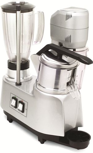 265x440x460 мм, 16 кг, 0.89кВт, 220В, комбайн на 3 функции: рычажная соковыжималка для цитрусовых (1400 об./мин.), блендер (10000 и 15000 об./мин.) и миксер (15000 об./мин.) ; пластиковые контейнеры