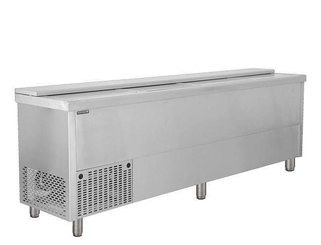 2505x565x930 мм, 0,2кВт, 220В, +2...+8С, 118кг, R600A, внутренний размер 2400x470x690 мм, объем 790/565 л. Ларь для напитков в банках и бутылках