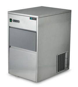398x542x682, 220 В, 0,24 кВт, 27,6 кг, производительность 26 кг/сутки, производительность за цикл - пальчиков/минут - 16/17, размер пальчика: d28x40 мм, бункер 7 кг, воздушное охлаждение, с подключением к воде, пальчиковый лёд, материал корпуса нержавеющая сталь