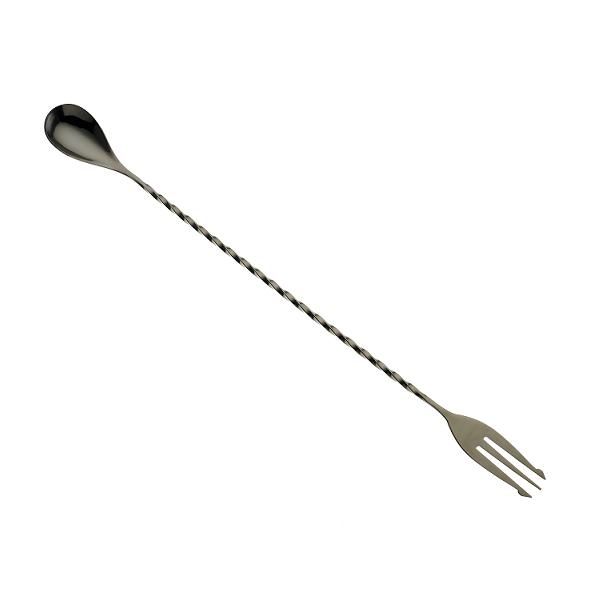 Ложка барная 31,5см, ручка витая, с вилочкой, черная сталь M37015BK
