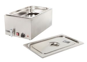 590x350x280, 220В, 1,2 кВт, вес нетто 9,7 кг, материал корпуса:нержавеющая сталь, в комплектацию входит гастроемкость GN1/1-150 с крышкой, возможно использование гастроемкостей GN1/3-150 (3 шт.) и GN1/2-150 (2 шт.), имеется кран для слива воды