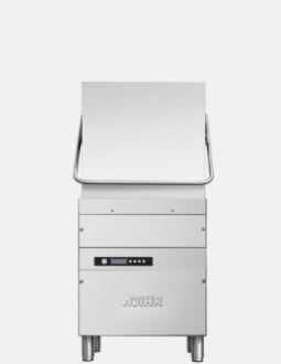 720x735x1445/1880 мм, 400В, 10,5кВт, кассета 500х500, 4 программы 60/40/30/20 кас/час; комплект корзин: 2 корзины C40 для тарелок, 1 универсальная плоская корзина C44, 2 подставки 15060 для столовых приборов, для мойки тарелок до 410 мм и гастроёмкостей GN 1/1 530x325 мм, пуск/остановка при закрывании/ открывании купола. С дозаторами моющего и ополаскивающего средств. С системой термодезинфекции HYGENE+