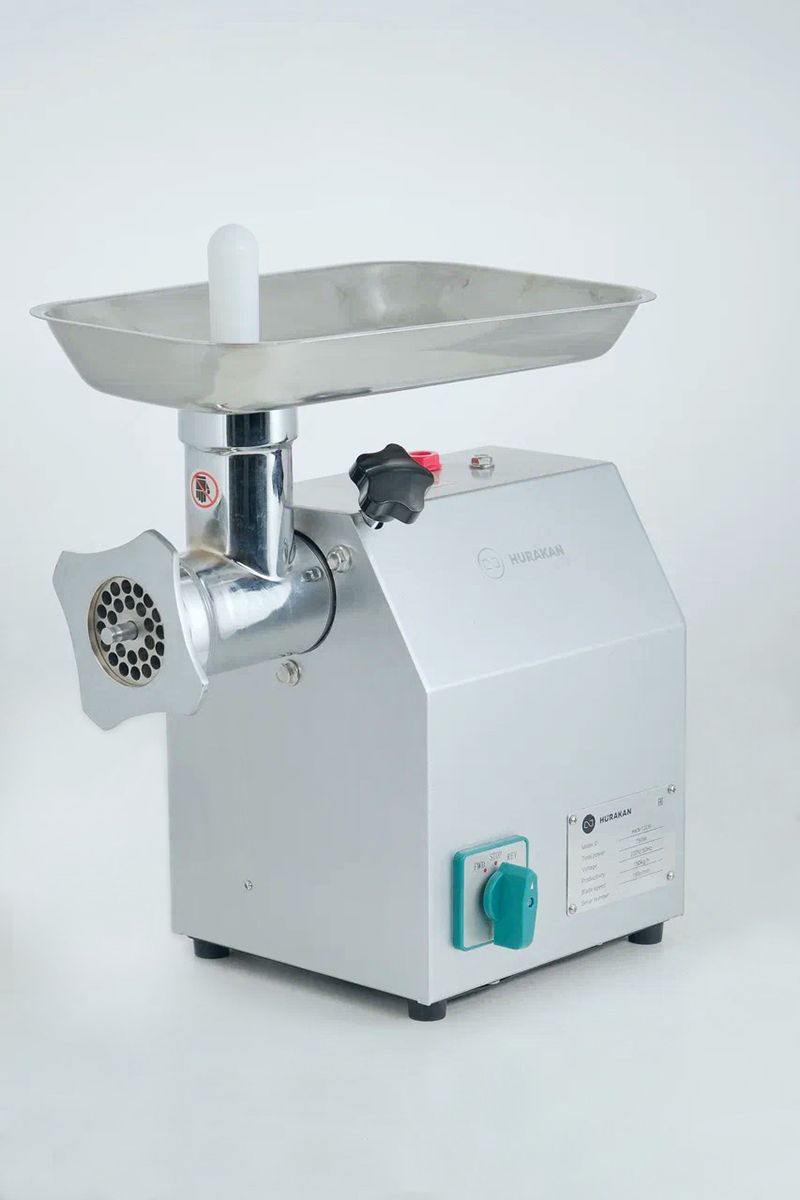 390x225x415, 220 В, 0,75 кВт, 24,5кг, реверс, в комплекте 2 ножа и 2 решетки диаметром 6мм и 8мм, 160 кг/час, вес нетто 25 кг, лоток нерж. сталь, мясорубочная часть - хромированный металл, корпус - крашеный металл