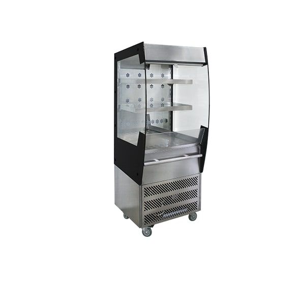 Напольная холодильная витрина-горка предназначена для демонстрации, кратковременного хранения и охлаждения продуктов и напитков на предприятиях общественного питания и торговли. Модель оснащена электронным управлением с дисплеем. Корпус и полки выполнены из нержавеющей стали, боковые панели - из стекла с черными рамками. Технические характеристики: Температурный режим: +4...+10°С Микропроцессорный блок управления Компрессор: Aspera, ACC, Electrolux, l'unite, hermetique Мощность: 0,23кВт Динамическое охлаждение Напряжение питания: 220В/50Гц Автоматическая оттайка испарителя Витрины выполнены из нержавеющей стали Подсветка 2 полки Ночная шторка