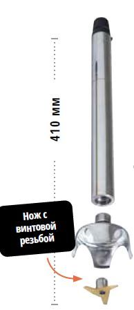 410 мм, 3 лезвия, 20-100 л. Обороты 3000-10500 (зависит от модели миксера, с которым используется насадка).