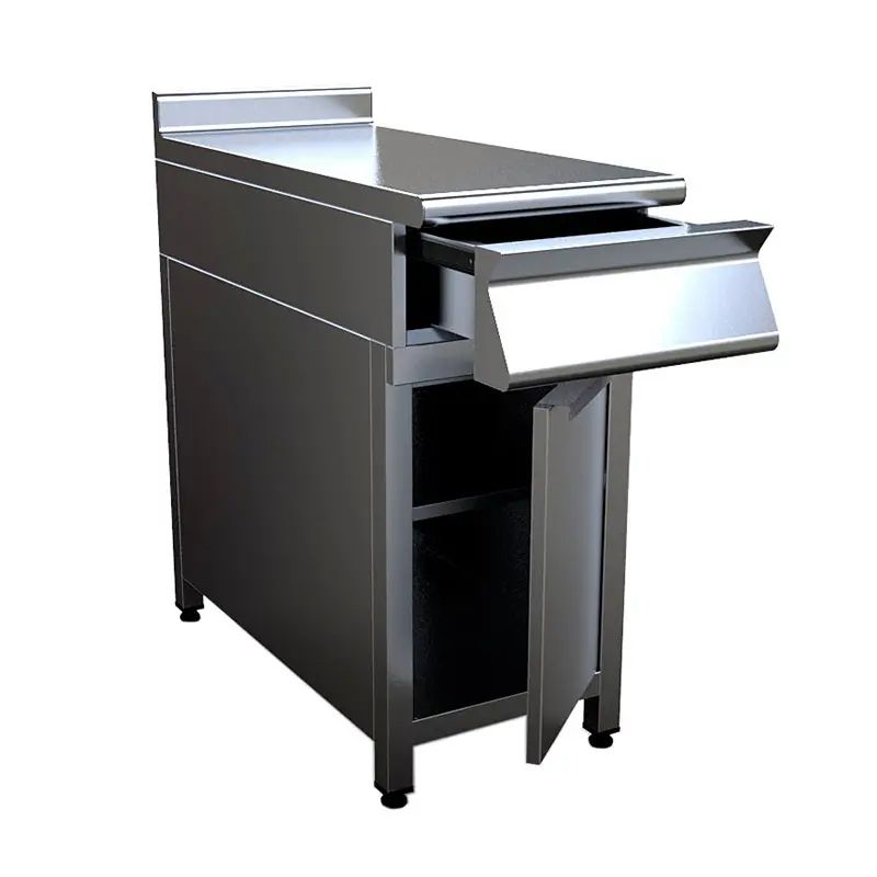700х700х870мм, Нейтральный модуль шириной 70см закрытый, с выдвижным ящиком, распашная дверка (дверки), корпус из н.с. AISI 430, каркас проф. труба 40х40мм, полка сплошная, регулируемые по высоте ножки, вес 55кг.