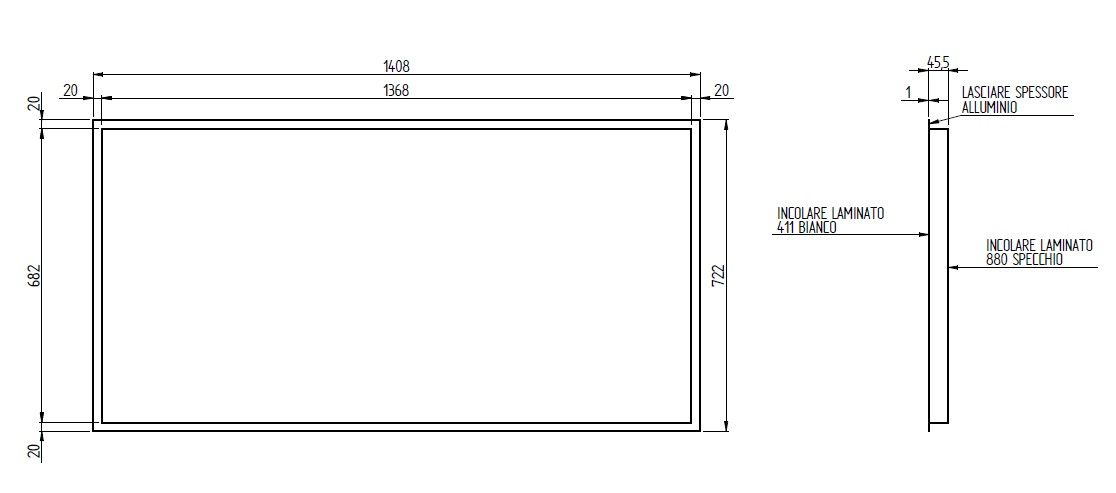 Код AC99040053; панель задняя для витрины холодильной раздачи Enofrigo Cervino. На замену стандартных 2 стеклянных дверец одной глухой панелью. Рамка - алюминий, центральная часть - ламинат с одной стороны цвет 411, с другой - цвет зеркальный 880.