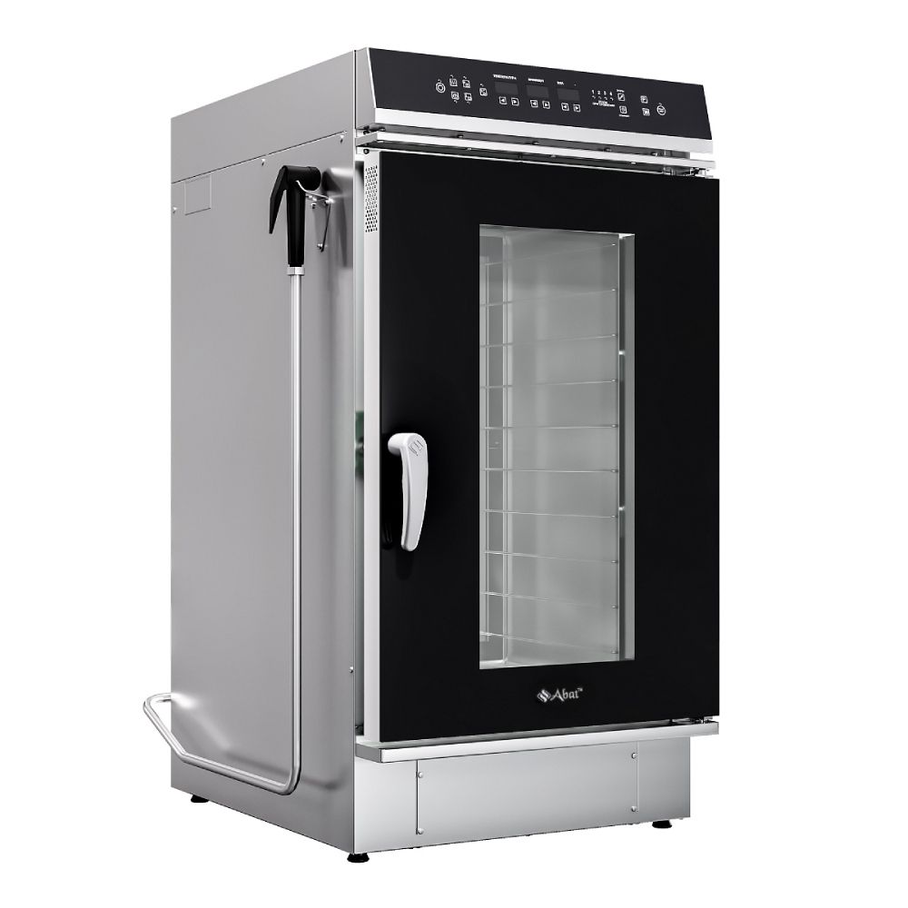 553х800х1095мм,Пароконвектомат ПКА 10-2/3П-01 верхняя панель управления (парогенератор, 10хGN-2/3, память на 110 программ приготовления, термощуп, регулировка влажности, автоматическая мойка, ручной душ в комплекте, вся нерж, без г/емкостей) черный дизайн, реверс, 230 В