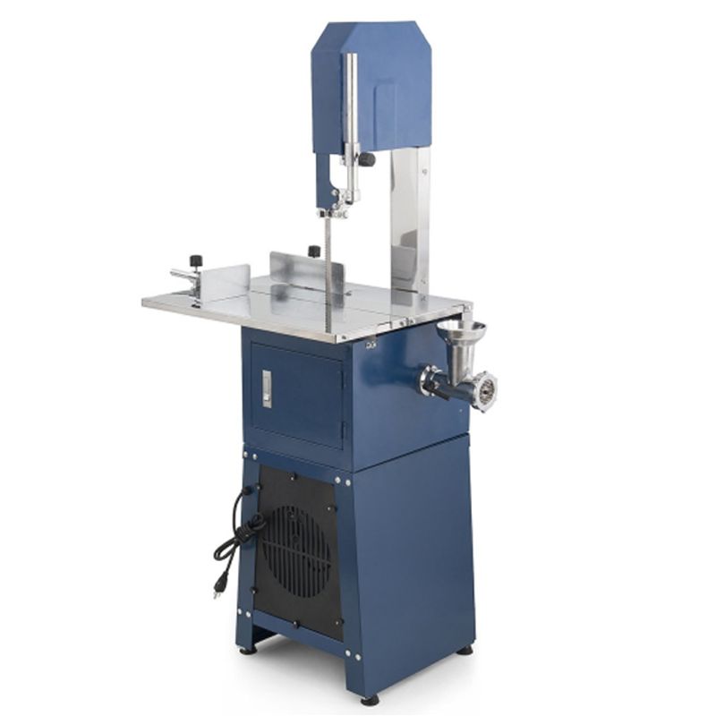 425x420x1500, 220В, 550Вт, 50кг, диаметр пильного колеса 250мм, длина полотна 2090мм, максимальная ширина отреза 210мм, размер рабочей поверхности из нерж. стали 465х596мм; крашеный корпус; скорость полотна 3,9 - 4,6м/c, встроенная мясорубка