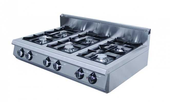 1180x800x320мм, 6 профессиональных горелок класса Heavy Duty, 4 горелки по 6.5 кВт, 2 - 9 кВт, газовая мощность 44 kW, газ/контроль, г.нетто , 136кг, брутто: 1330х950х620, 161 кг.