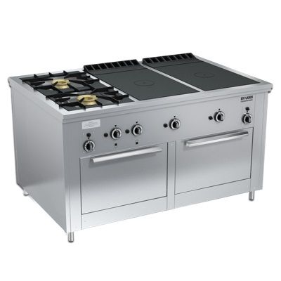 1470х990х850мм, Газовая плита Вулкан ПРГ-IIA-6-2 2ДШ Maxi предназначена для приготовления первых, вторых и третьих блюд в наплитной посуде, выпечки хлебобулочных и кондитерских изделий на предприятиях общественного питания и торговли. Модель оснащена 2 секционными и 2 сплошными горелками, 2 духовыми шкафами, газ-контролем, пьезорозжигом и запальной горелкой. Корпус выполнен из нержавеющей стали.