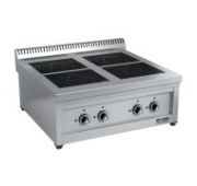 800х700х850мм, Индукционная напольная плита из нержавеющей стали имеет 4 мощные конфорки по 5кВт, выполненные из прочного стекла SCHOTT CERAN или EURO KERA. Мощность регулируется чувствительным 16-позиционным переключателем. Оснащена умной системой распознавания посуды, 4х5кВт, конфорка: 310х270см, толщина-4мм, питание: 380В