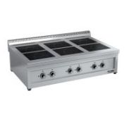 1200х900х850мм, Индукционная напольная плита из нержавеющей стали имеет 6 мощных конфорок по 5кВт, выполненных из прочного стекла SCHOTT CERAN или EURO KERA. Мощность регулируется чувствительным 16-позиционным переключателем. Оснащена умной системой распознавания посуды, 6х5кВт, конфорка: 360х310см, толщина-6мм, питание: 380В