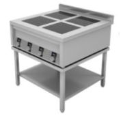 900х900х300мм, Плита 4конфорочная плоская островная, столешница из нержавеющей стали марки AISI 304 толщиной 1,2 мм, корпус из нержавеющей стали марки AISI 430 толщиной 0,8мм. Мощность 4х5 кВт, без борта, питание 380В. Толщина стеклокерамики 6мм. 9 уровней мощности. Поставляется в собранном виде., для ИПП-440147 подходят подставки СПИ-033/919, СПИ-837/919, СПИ-834/919, -, -