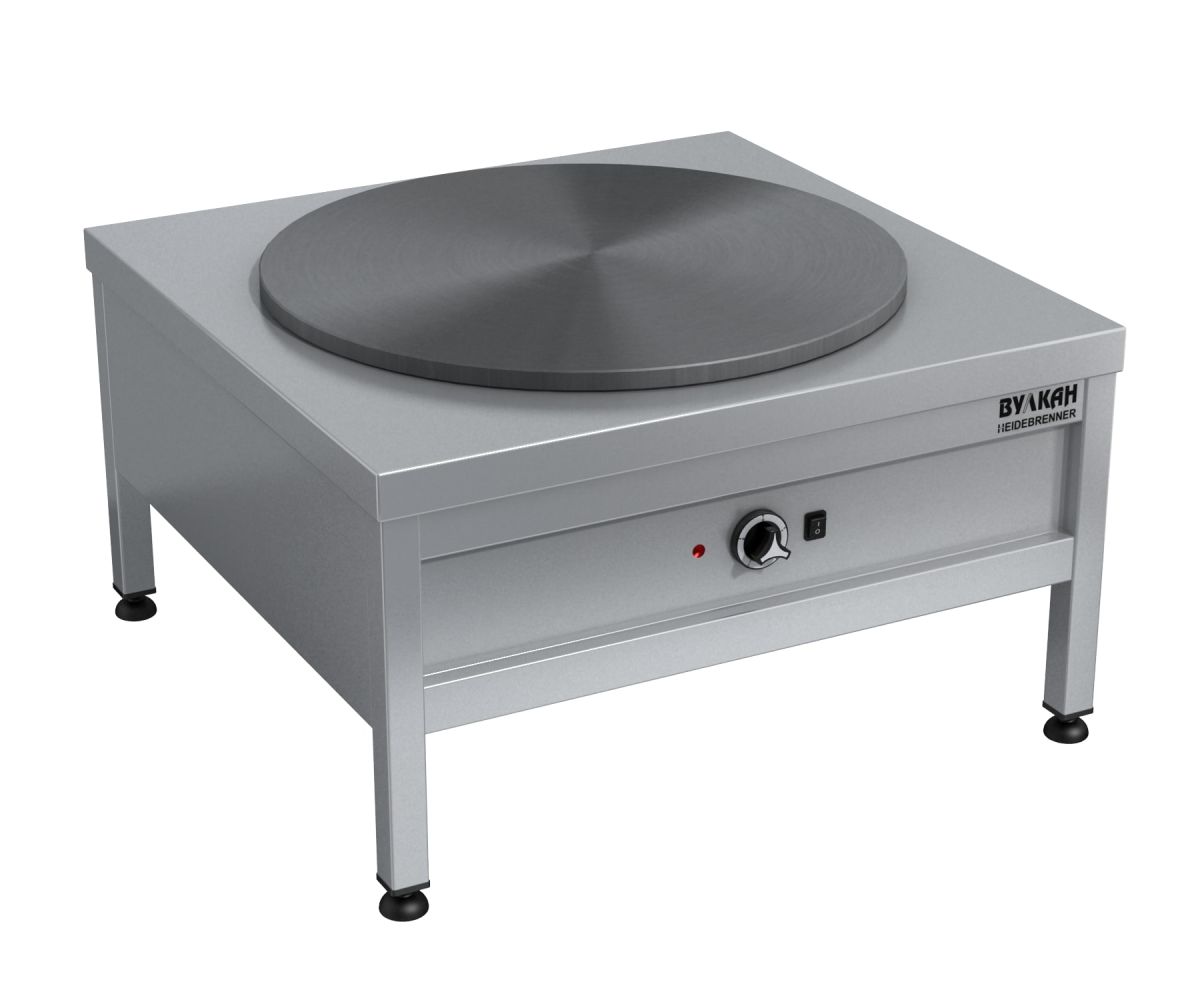 850х850х500мм, Мощная электрическая плита-табурет способна заменить большую плиту при выездных мероприятиях, а в сочетании с гигантскими чугунными сковородами может быть организована идеальная линия раздачи, 12кВт, диаметр конфорки-700мм, питание-380В