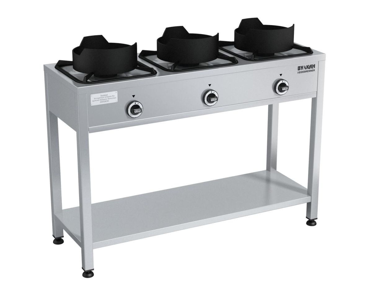 1500х500х850мм, Газовая напольная Вок-плита из нержавеющей стали, дает наивысшую производительность специальной бородавочной горелки со сконцентрированным огнем. Газконтроль, запальная горелка, пьезоподжиг, кольцевая ВОК-насадка, работа на природном или сжиженном газе, 3х9,3кВт, Расход газа: прир (сжиж)-2,83 (2,20)м3?ч (кг/ч)