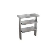 1800х400х800 Полка настольная для столов со столешницей ЛДСП разборная из нержавеющей стали марки AISI 430 толщиной 0,8мм, с усилителем, 2 яруса. Боковины (стойки) из трубы 20х20 нержавеющей стали марки AISI 430 толщиной 1,2мм. Крепление к столу болтовое через отверстие в столешнице. Полка поставляется в разобранном виде. вес15,7 кг