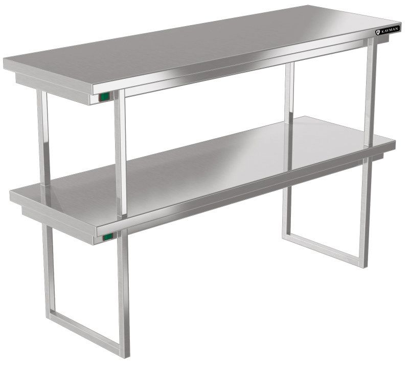 800х300х800 Полка тепловая настольная разборная, 2 яруса, комбинированная, верхний уровень с подогревом, нижний без подогрева. Температура в зоне действия нагревательного элемента, не более, С +605С. Полки из нержавеющей стали марки AISI 430 толщиной 0,8мм, каркас труба 20х20 из нержавеющей стали марки AISI 430 толщиной 1,2мм. Мощность 0,6кВт. Поставляется в разобранном виде., вес 8,9кг