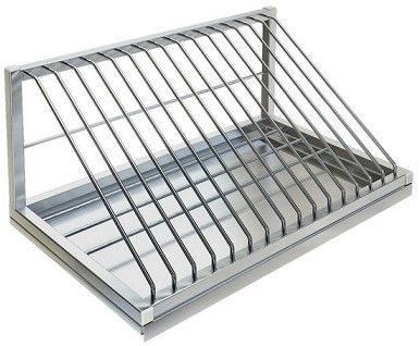 600х355х270мм, Полка настенная для досок и крышек сварная из нержавеющей стали марки AISI 304, 15 секций на 15 крышек, выполнена из трубы 20х20 и прутка Д-6мм. Имеет отверстие с вырезом "замочная скважина" для крепления к стене. Торцы труб закрыты заглушками. Поддон для сбора воды. Полка поставляется в собранном виде.