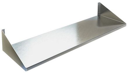 1800х300х145мм, Полка сплошная из нержавеющей стали марки AISI 430 толщиной 0,8мм, разборная, болтовое соединение. Навесные полки крепятся к стене при помощи двух боковых кронштейнов. Кронштейн крепления может быть, как сверху, так и снизу полки. Полки рекомендуется крепить к влагоустойчивым поверхностям. Возможно размещение полок одна над другой. Полка поставляется в разобранном виде.