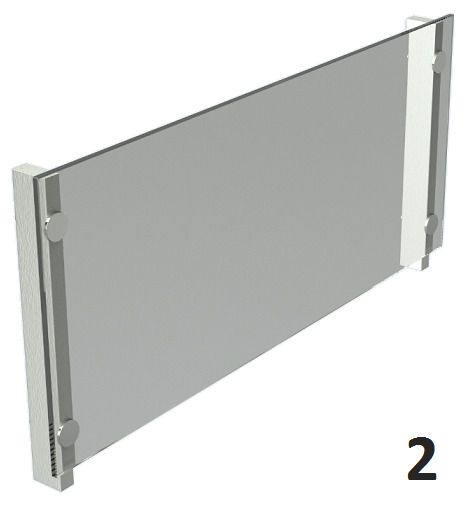 1130х60х400мм, Полка верхняя из нержавеющей стали марки AISI 304 толщиной 1,2мм и каленого стекла толщиной 8мм, экран. Поставляется в разобранном виде. Скрытый монтаж.