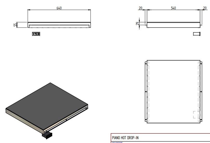 Код A1PIANOHOTKSB; 640х540х60мм, 0,7кВт, 220В, +20…+100С, стеклокерамическая, встраиваемая