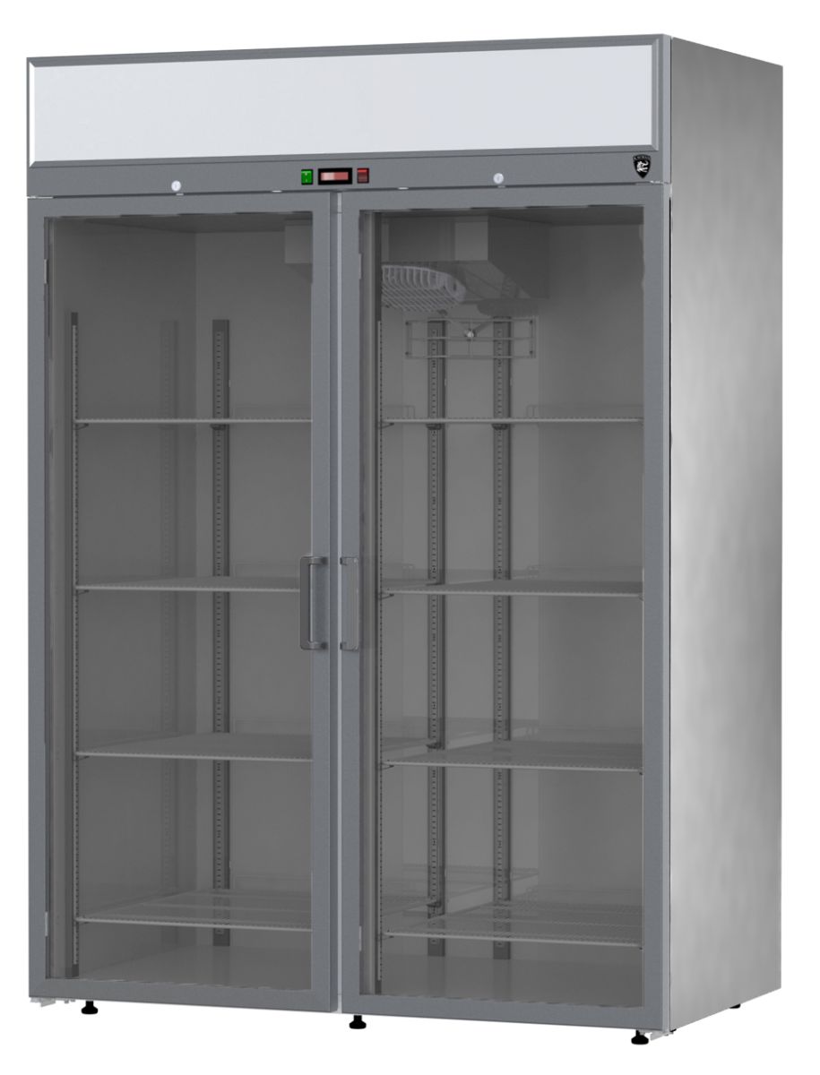 1400х860х2015мм, -5…+5С, 1400л, 2 двери стекло, нержавеющая сталь, R290, подсветка на фронтальной панели, клапан шредера, верхнее расположение агрегата, 230В, 50 Гц, тип охлаждения динамический, оттайка автоматическая при помощи ТЭНов, с системой испарения конденсата. Терморегулятор эл. блок. ПЭН обогрева трубки слива конденсата. Кол-во полок 10, подсветка, замок. Суточный расход электроэнергии 9,5кВ/ч. Потребляемая мощность 0,85раб/0,418отт кВт. Стандарт Gastronorm GN 2/1. Вес 190кг. Толщина стенки корпуса 40мм.