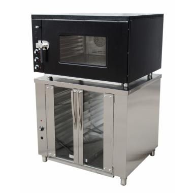 950х815х850мм, терморегулятор 30-110 С, пароувлажнение, стеклянные двери, подсветка камеры, 6 направляющих под противни 600х400/ 650х530/690х450, 0,9 кВт, 950х815х850мм;70кг;выполненена полностью из нержавеющей стали г.брутто:1050х915х1100; 95кг, может использоваться в качестве стенда для печей