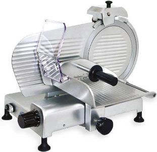 Габариты 683 x 552 x H 560 мм. Диаметр ножа 350 мм, рез 265 x 225 мм. Полуавтоматический вертикальный слайсер для нарезки мяса, сыра, колбасных изделий и других продуктов питания. Толщина нарезки 0-15 мм. Слайсер для профессионального использования на предприятиях общественного питания. Нож из хромированной стали, корпус из лакированного алюминия с пластиковыми деталями. Фиксированное заточное устройство.