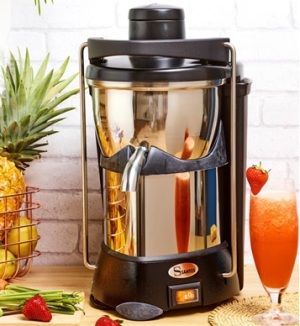 260х470х450 мм, 14 кг, 0,8 кВт, универсальный, Корпус: литой алюминий и нержавеющая сталь. Корпус и основание -крашеное. Производит-ть до 100 л/час (зависит от используемых овощей и фруктов); скорость 3000 об/мин.; идеальная фильтрация для высококачественного сока: большая корзина с очень мелким ситом 0,5 мм; широкий загрузочный лоток (79,5 мм): не нужно резать яблоки, морковь, помидоры...; Бесшумный: 65 dB. безопасность: отключение электричества и торможение двигателя, останавливающее корзину при открывании ручки; эксклюзивная система Ezy-clean : съемная чаша, корзина и крышка (инструмент не требуется); высота носика: 200 мм (8,6 дюйма), для приготовления сока в стаканах, кувшинах и кувшинах блендера