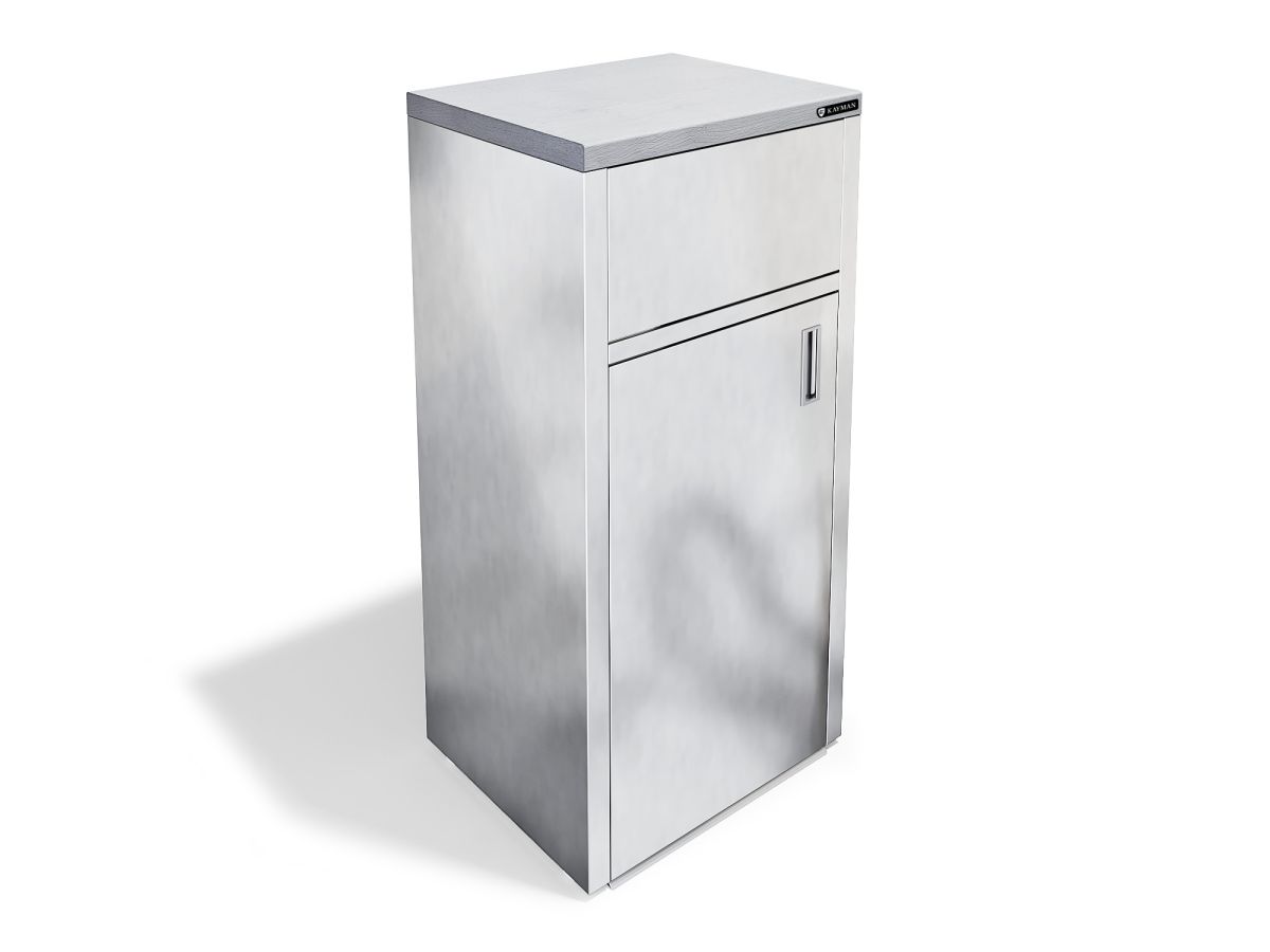 1250х600х500, материал станции AISI 430, столешница с подложкой из ЛДСП 16 мм, в комплекте выкатной бак с рамкой для мусорных пакетов, 4 колеса, размер 690х400х400 (110л) материал AISI 430