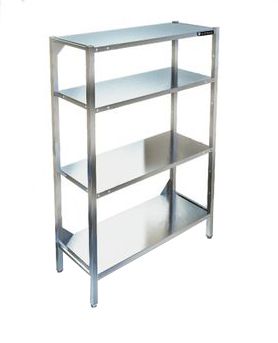1880х400х1850мм,каркас разборный, стойки труба 40х40 из нержавеющей стали AISI 430, полки сплошные из стали AISI 430Нагрузка на одну полку- 100 кг- равнораспределенная. Дополнительные укосины для жесткости конструкции