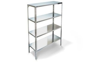 600х400х1830, каркас разборный, стойки из оцинкованного уголка 40х40 из, толщиной 1,5 мм, 4 полки сплошные из стали AISI 430, толщиной 0,8 ммНагрузка на одну полку- 100 кг- равнораспределенная. Дополнительные укосины для жесткости конструкции