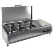 590х680х1575мм, количество уровней 12, расстояние между уровнями 113, максимальная распределенная нагрузка общая 160кг, максимальная распределенная нагрузка на одну полку 15кг, материал направляющих AISI 304, материал стоек нерж. сталь 1,5мм, профиль стоек труба 25х25мм. К рамам приварены 12 пар направляющих для размещения гастроемкостей GN2/1. Колесная опора без тормозов 2шт., колесная опора с тормозом 2шт. Диаметр поворотных колес 100мм. Вес 20кг.