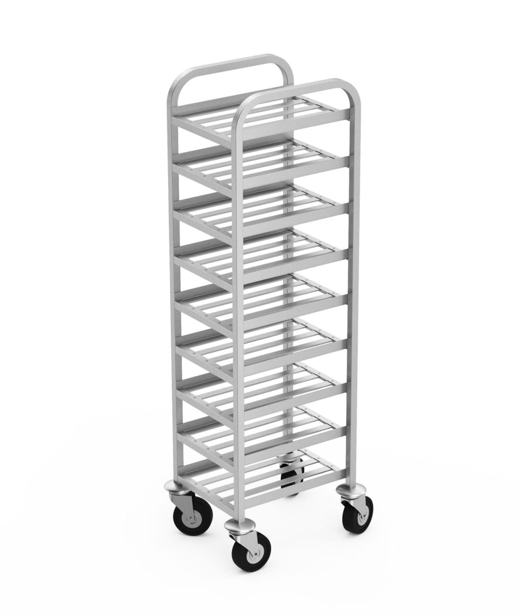 365*455*1500 мм, из стали AISI 304, решетч. из стали AISI 304, 9 уровней для 9 подносов, объем 0,26 Поднос до 325 х 455 мм. Загрузка по узкой стороне.