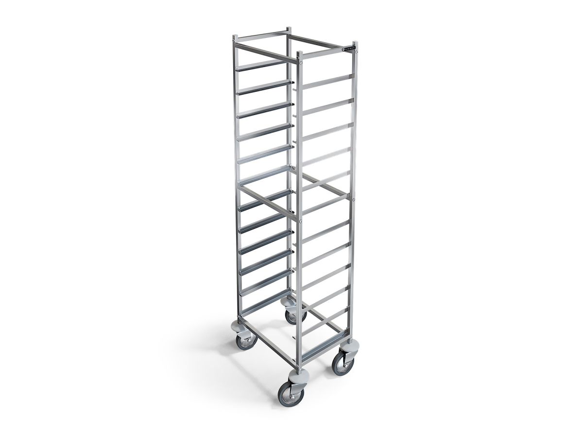 510х365х1760мм.Тележка шпилька разборная для подносов БЕЗ РУЧЕК,12 уровней, максимальный габаритный размер подносов 450х355, расстояние между направляющими 120 мм, сталь AISI 430
