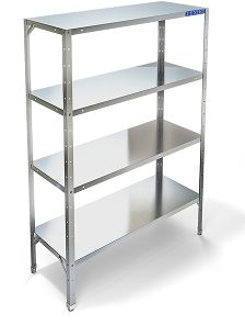 1400х600х1820мм, Стеллаж технологический разборный, стойки из уголка 40х40 толщиной 2мм, покрытого порошковой краской серого цвета. Четыре сплошные полки из нержавеющей стали марки AISI 304 толщиной 0,8мм. Расстояние между полками регулируемое с шагом 50мм. Регулируемые опоры. Стеллаж поставляется в разобранном виде.