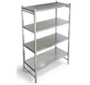 490х610х1820мм, Стеллаж технологический разборный, стойки из трубы 40х20 нержавеющей стали марки AISI 304 толщиной 1,2мм. Четыре сплошные полки из нержавеющей стали марки AISI 304 толщиной 0,8мм. Расстояние между полками регулируемое с шагом 120мм. Регулируемые опоры. Стеллаж поставляется в разобранном виде.