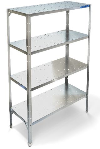 490х610х1820мм, Стеллаж технологический разборный, стойки из трубы 40х20 нержавеющей стали марки AISI 304 толщиной 1,2мм. Четыре перфорированные полки из нержавеющей стали марки AISI 304 толщиной 0,8мм. Расстояние между полками регулируемое с шагом 120мм. Регулируемые опоры. Стеллаж поставляется в разобранном виде.